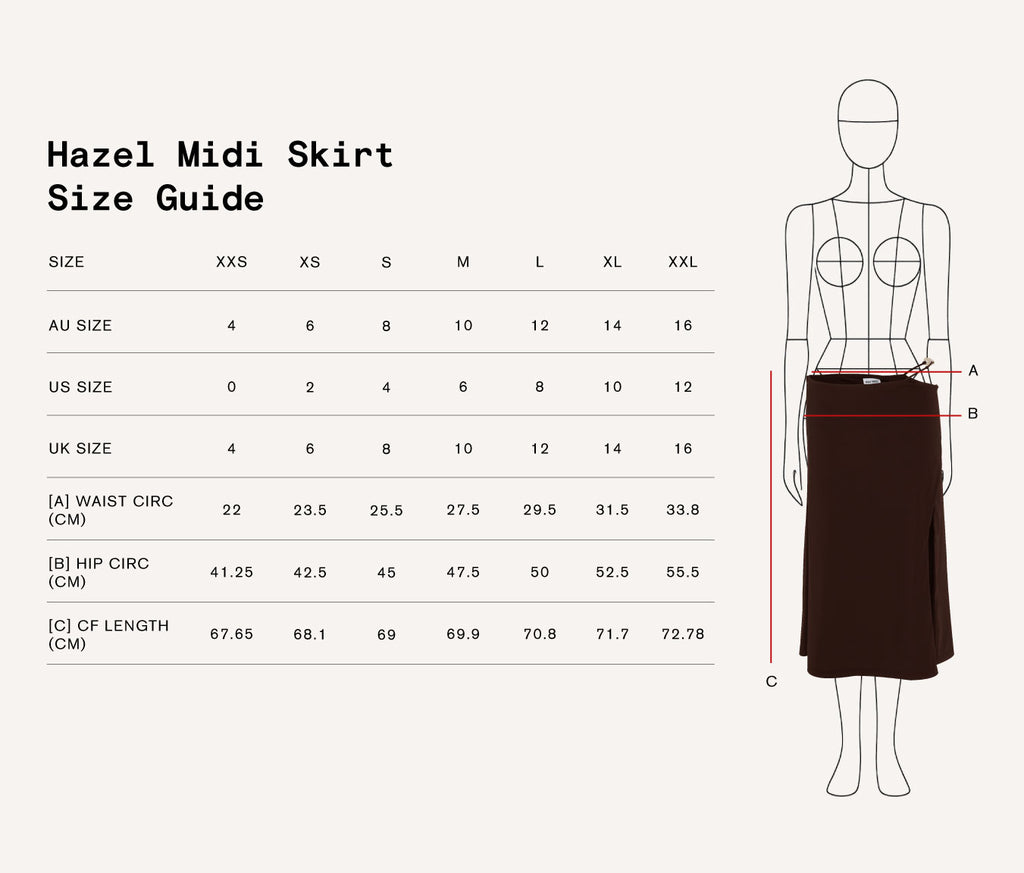 Turn heads in the effortlessly cool Hazel Midi Skirt. This skirt is designed with a beading feature, that takes a basic staple and turns it into an elevated skirt. The fine strap sits to the side, highlighting and accentuating the hips. Followed by a side slit showing off the legs. This skirt sits tighter across the hips but then flows down past the knee.