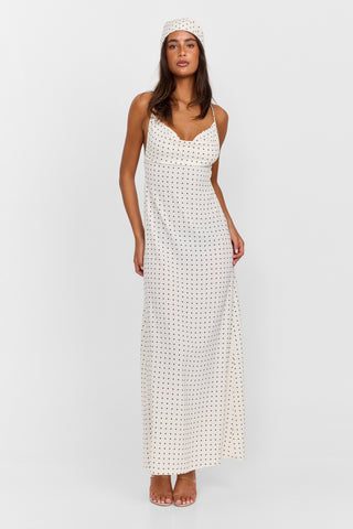A playful nod to retro charm, the Lottie Bandanna brings a vintage twist to your styling. Crafted in a soft ivory base scattered with classic black polka dots, this lightweight piece adds a feminine accent to any look.