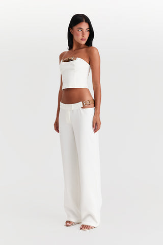 Introducing our Lucia top. Made from our best selling mid weight stretch suiting, our Lucia Top is designed to be paired back with our Lucia Pant for a head-to-toe co-ord. It features a side seam zipper for easy wear, and the buckle is adjustable at the bust for extra support.