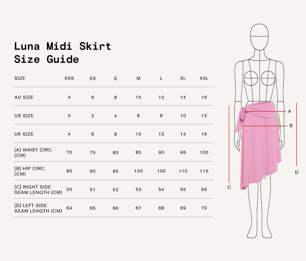 A fluid silhouette with a modern twist. The Luna Midi Skirt features an asymmetrical hemline and a flattering wrap waistband that ties at the hip for adjustable fit and detail. Cut in a soft stretch jersey fabrication, the skirt cascades elegantly around the body, offering movement and ease.