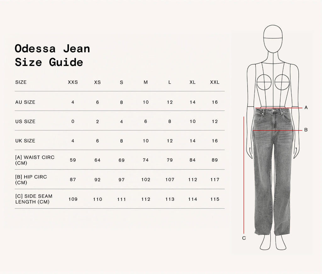 Cut from a faded grey denim, the Odessa Jean is your new off-duty essential. This high-waisted silhouette features a relaxed straight leg and subtle whiskering through the hips for a worn-in edge. Finished with a raw-cut hem for added texture, this jean offers effortless style from day to night.