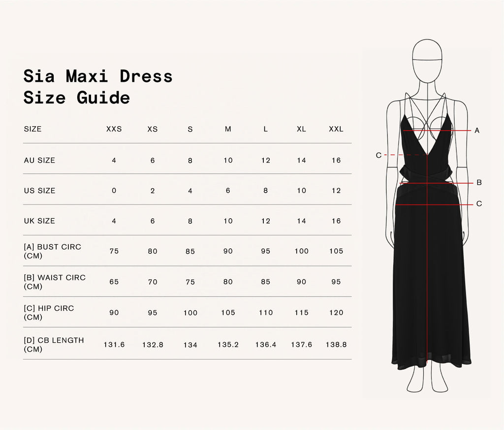 Make an unforgettable entrance in the Sia Maxi Dress. Crafted from soft chiffon and designed with a plunging neckline, this floor-length silhouette features a crossover satin waistband and sultry cut-out sides. A low open back with delicate crossover straps adds an elegant yet daring touch. The straps are fixed and not adjustable.